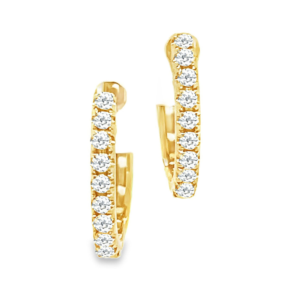 14 karat yellow gold, tiny huggies with (18) 0.25cttw round brilliant cut diamonds. 1.75mm wide