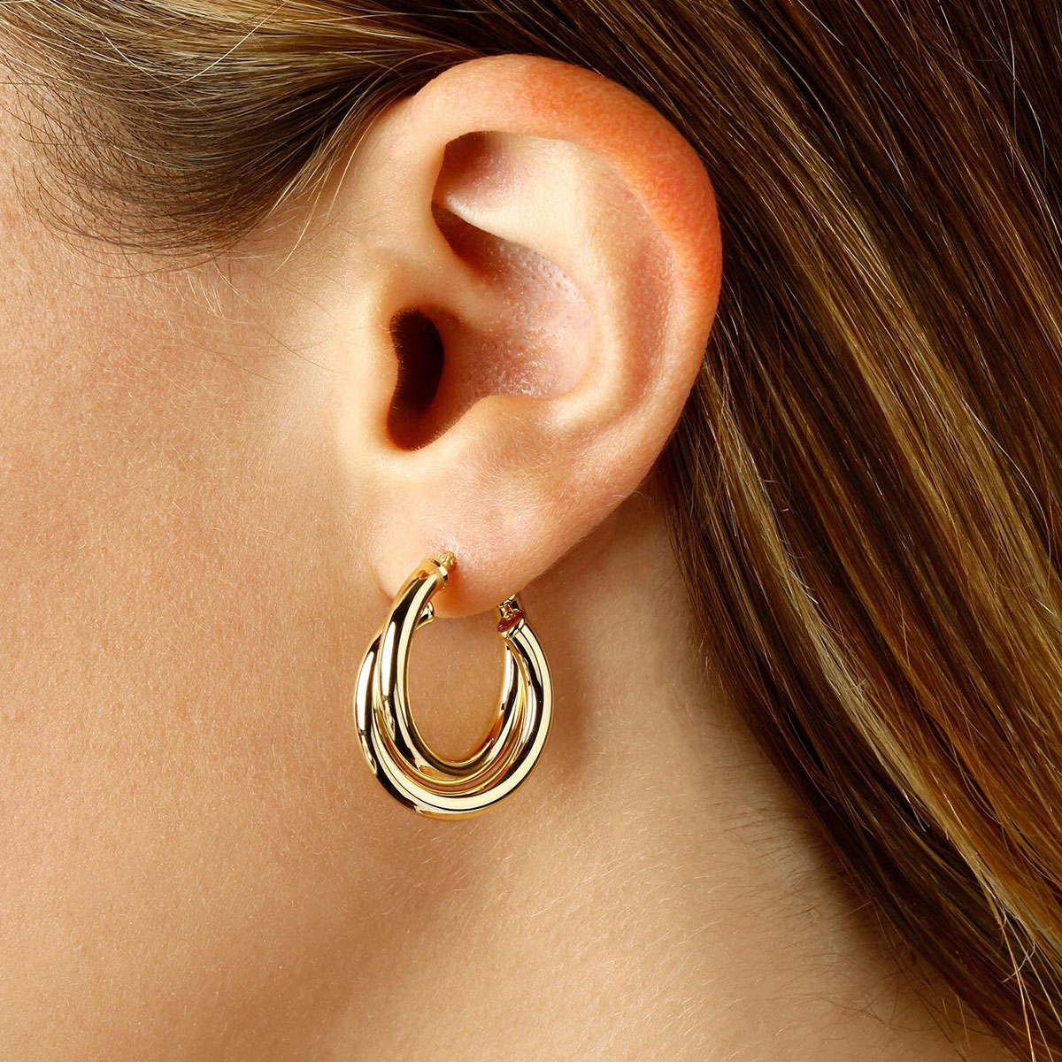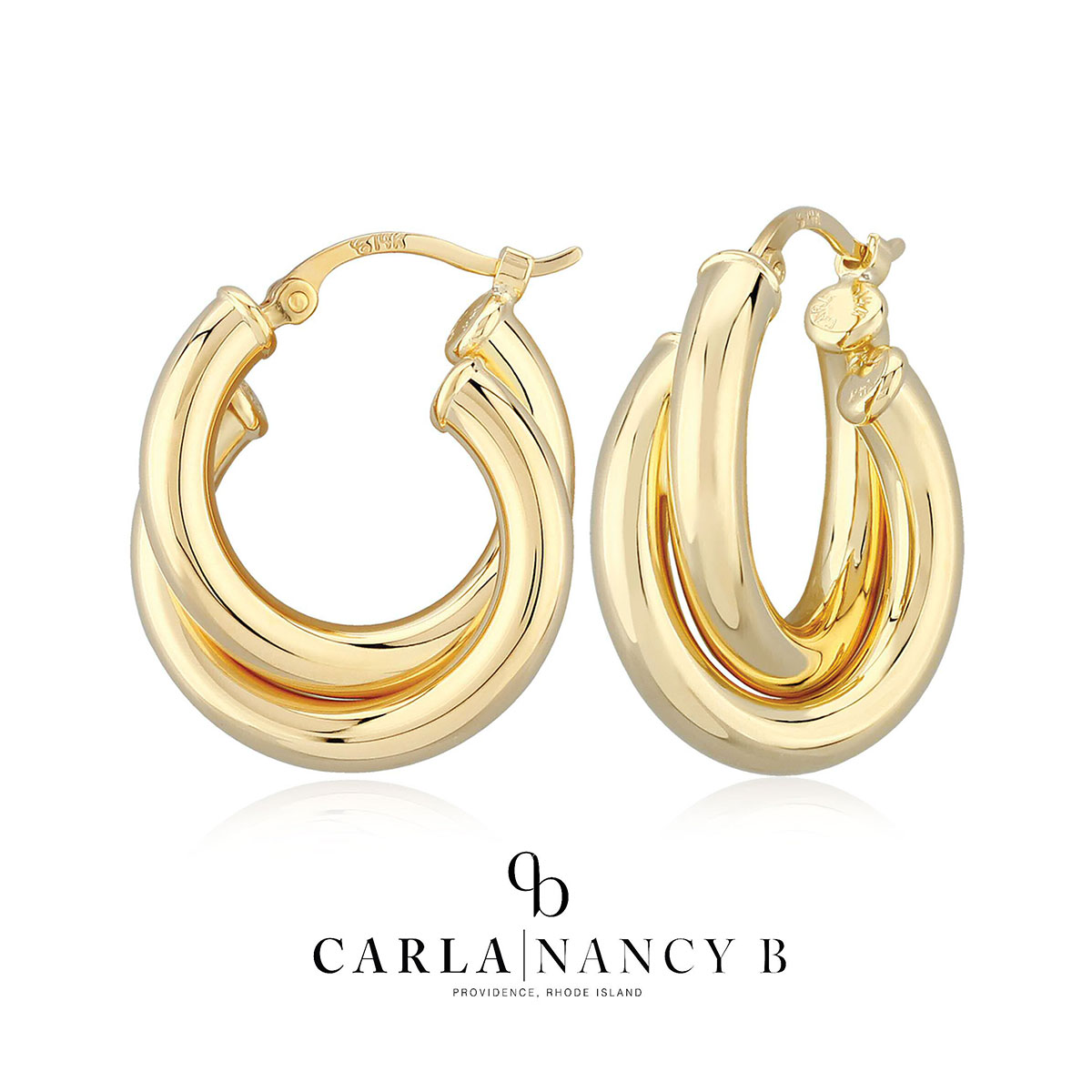 14 karat yellow gold double hoop earrings. Made by Carla B. Made in the USA.