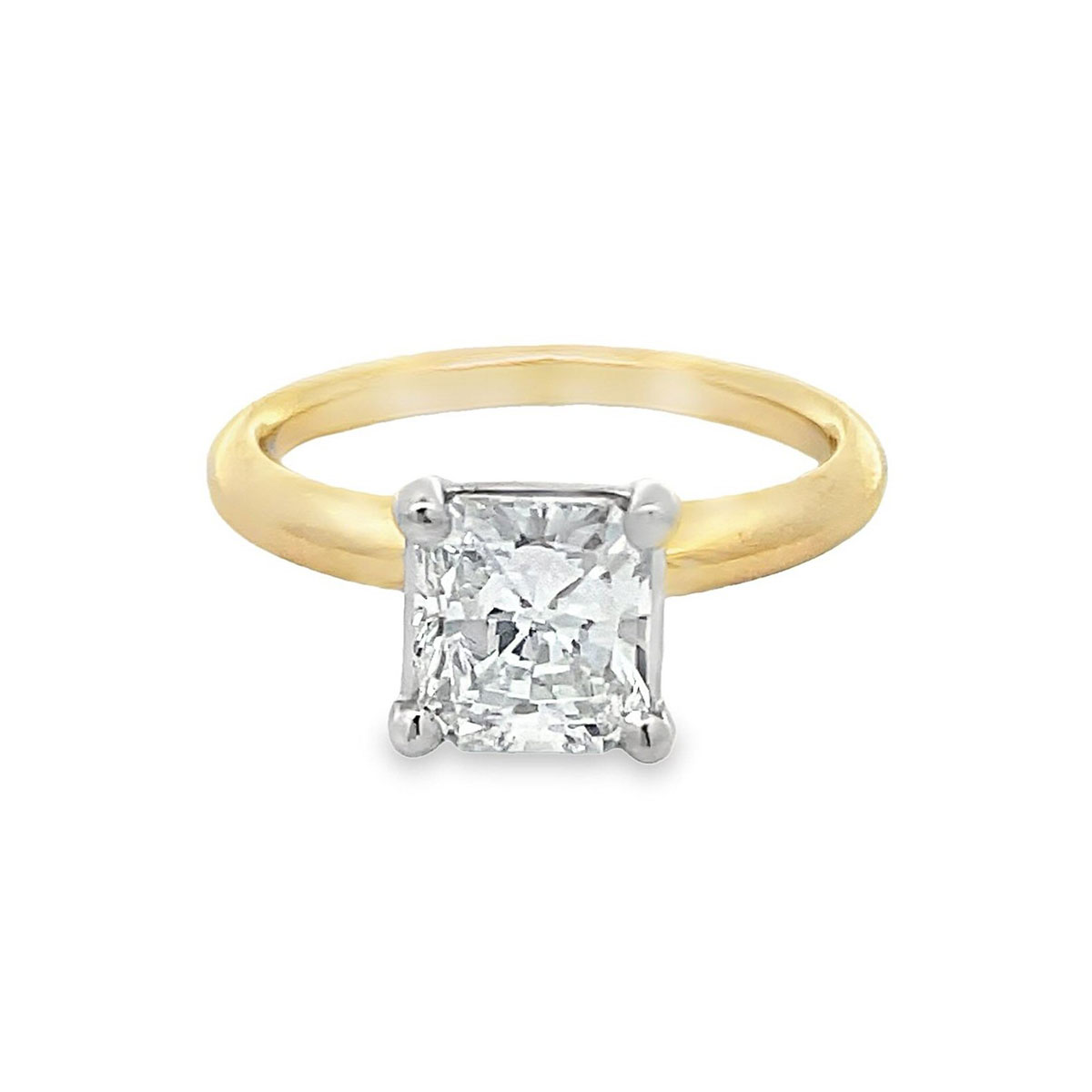 Gorgeous 14 karat yellow and white gold Tiffany style engagement ring. The 1.49 carat Radiant Cut diamond is SI2 clarity and H color. It is certified as such by Gemological Institute of America, certificate #2235084997. Classic elegance. The diamond may be purchased separately for $11,000.