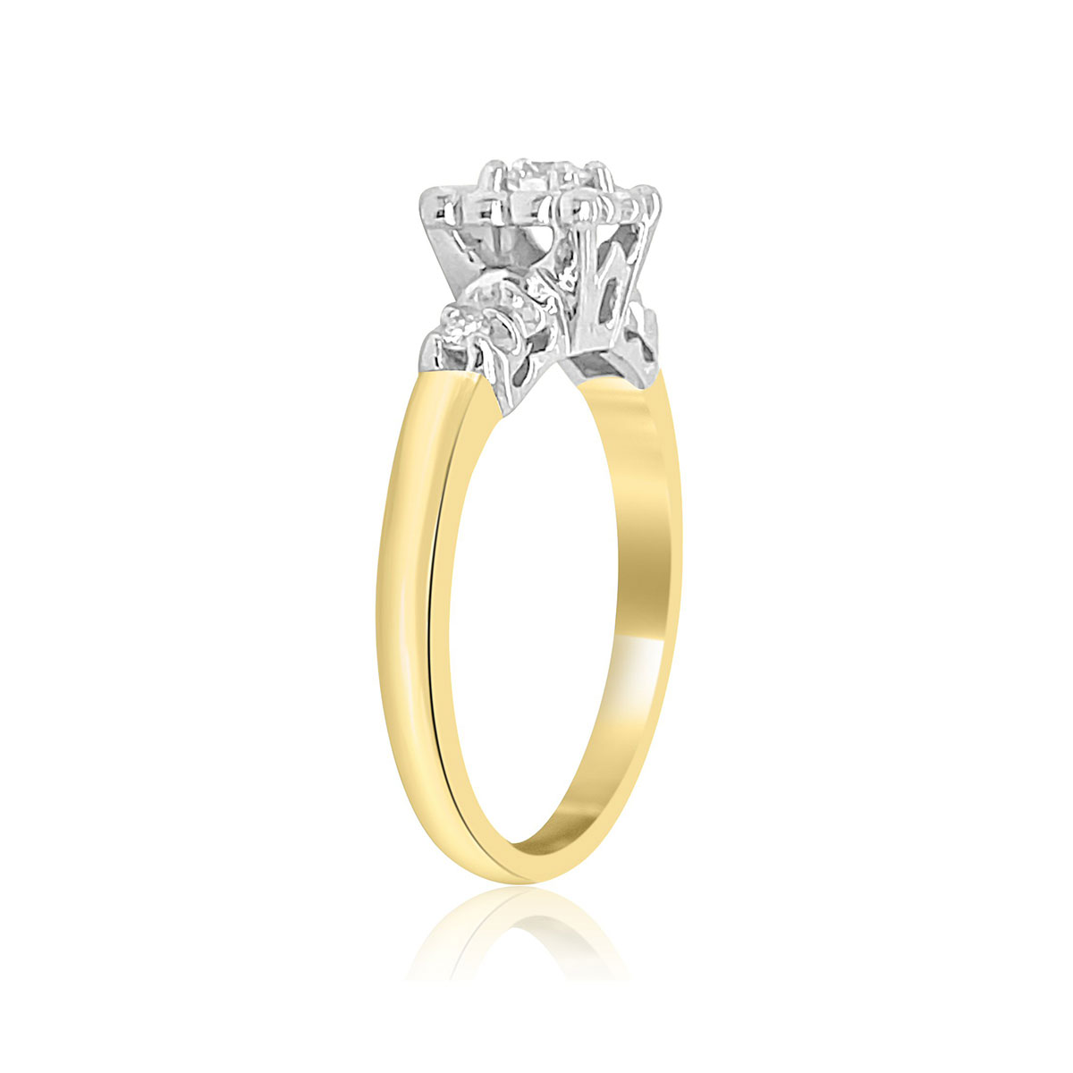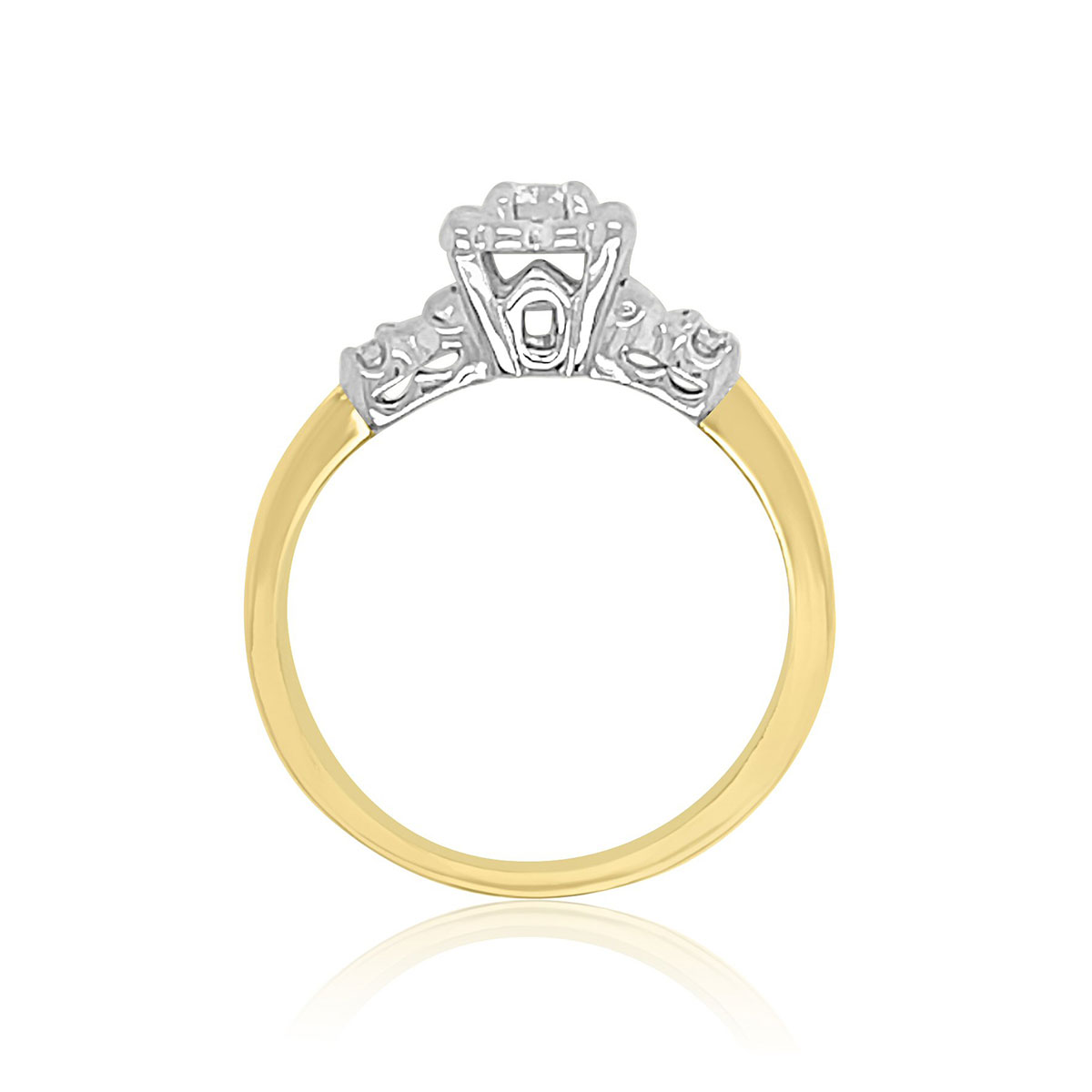 14 karat yellow and white gold engagement ring with 0.16cttw round brilliant cut diamonds of VS clarity and F color.. The center diamond is a 0.12ct round brilliant cut diamond. Close match to Diamond Band #4598-band.