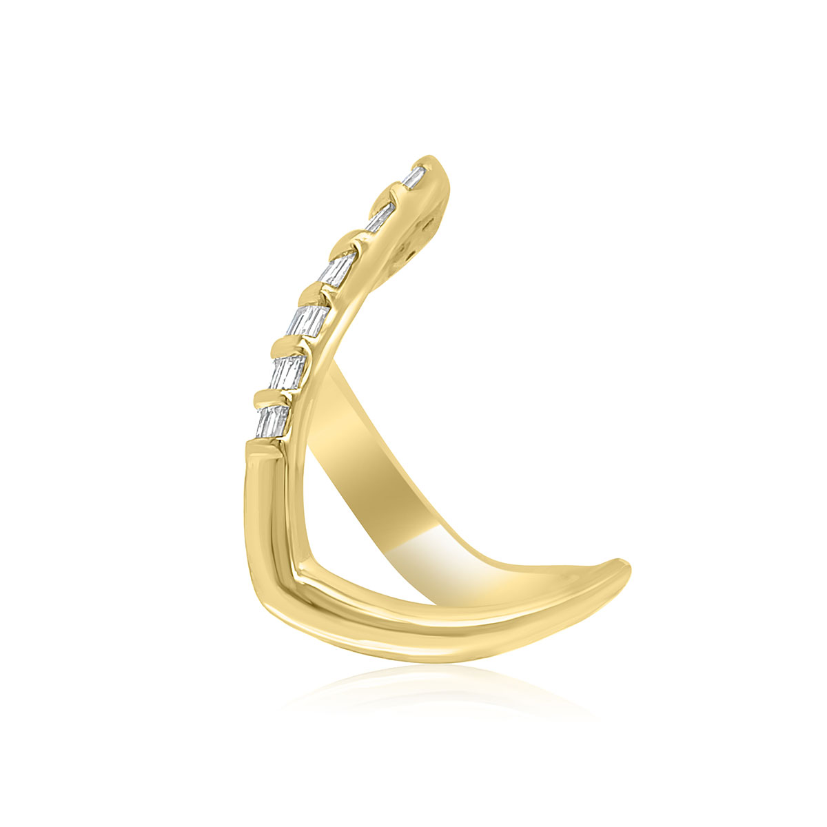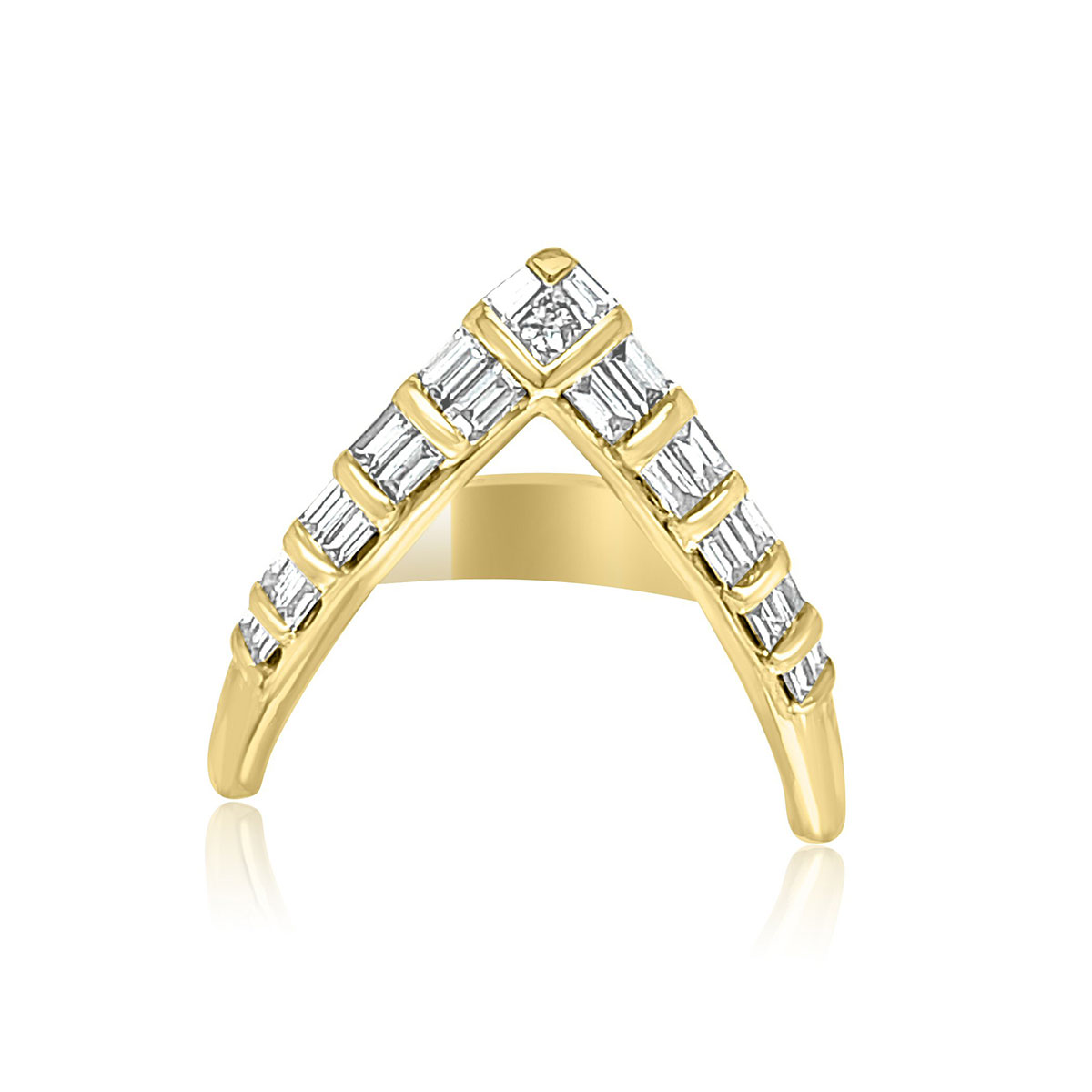 14 karat yellow gold 0.40cttw baguette cut diamond “V” shaped ring.