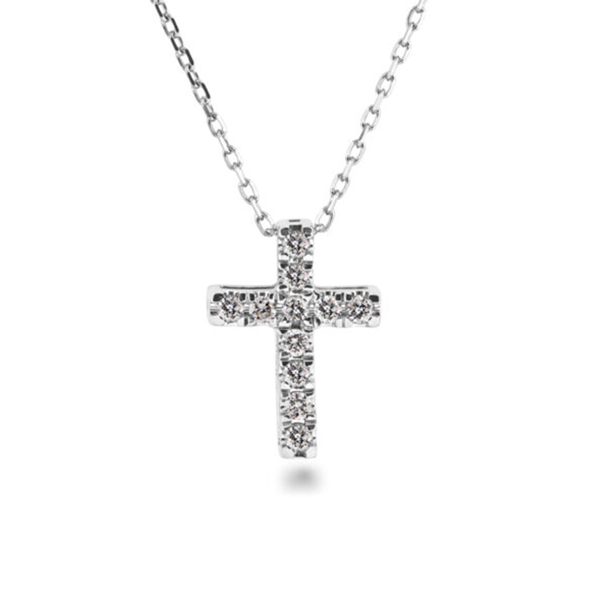 14 karat white gold 0.16cttw diamond cross, adjustable cable chain, 17-18″ long.